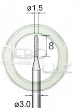 NBL15C Ponta diamantada cilindrica radial 1,5x8 mm haste 3 mm aplicação industrial.