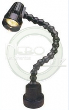 Características · Tensão 220V. saida 12v-20W · Lâmpada halógena. · Braço longo e flexível 400 mm acoplados por elos acopláveis. · Base magnética. · Fornecido com cabo de 1,8 mts. · Aplicação em locais onde necessita luz concentrada e brilhante. · Partes plásticas oferece isolação. · Segurança máxima ao operador. |