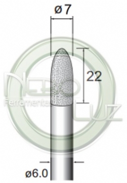 NBLM70F Ponta diamantada labareda 7x22 mm haste 6 mm Neboluz