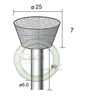 NBLM250Y Ponta diamantada cônica invertida 25x7 mm haste 6 mm