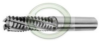 Fresa de topo para desbaste, tipo “CHIPMASTER”, haste cilíndrica, corte a direita, vários cortes com hélice ~25o