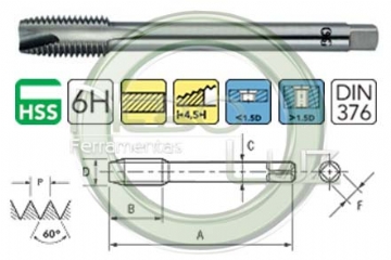 Macho para máquina M-18,0x2,5 mm ponta helicoidal para aços 260/1 Osg