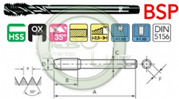 Macho para maquina BSP-1/8x28f 192 SFT.VX canal helicoidal para inox